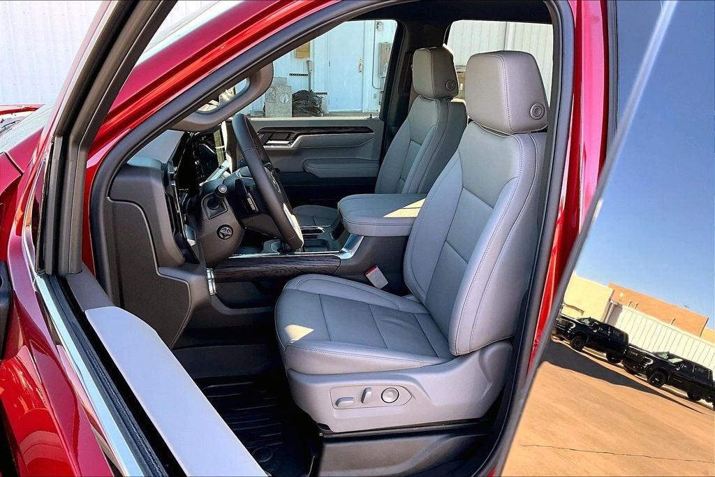 Volcanic Red Tintcoat 2026 GMC Sierra 1500 3.0L I6 10-Speed Automatic 4WD SLT 10-Speed Automatic, 4WD, Dark Walnut/Slate Leather.