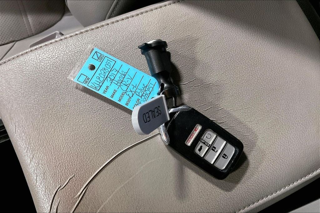 2017 Honda CR-V EX-L EX-L Blue 4D Sport Utility FWD 1.5L I4 DOHC 16V CVT 1 Owner, New Feature, Backup camera, Blind Spot Monitoring, Bluetooth®, Leather seats, CR-V EX-L, 4D Sport Utility, 1.5L I4 DOHC 16V, CVT, FWD, Blue, Ivory w/Leather Seat Trim, 18 Alloy Wheels, 4-Wheel Disc Brakes, 5.64 Axle Ratio, 8 Speakers, ABS brakes, Air Conditioning, Alloy wheels, AM/FM radio: SiriusXM, Apple CarPlay/Android Auto, Auto High-beam Headlights, Auto-dimming Rear-View mirror, Automatic temperature control, Blind Spot Information (BSI) System warning, Brake assist, Bumpers: body-color, Compass, Delay-off headlights, Driver door bin, Driver vanity mirror, Dual front impact airbags, Dual front side impact airbags, Electronic Stability Control, Exterior Parking Camera Rear, Four wheel independent suspension, Front anti-roll bar, Front Bucket Seats, Front Center Armrest, Front dual zone A/C, Front fog lights, Front reading lights, Fully automatic headlights, Garage door transmitter: HomeLink, Heated door mirrors, Heated Front Bucket Seats, Heated front seats, Illuminated entry, Leather Seat Trim, Leather Shift Knob, Low tire pressure warning, Memory seat, Occupant sensing airbag, Outside temperature display, Overhead airbag, Overhead console, Panic alarm, Passenger door bin, Power door mirrors, Power driver seat, Power Liftgate, Power moonroof, Power passenger seat, Power steering, Power windows, Radio data system, Radio: AM/FM/HD/SiriusXM Audio System, Rear anti-roll bar, Rear seat center armrest, Rear window defroster, Rear window wiper, Remote keyless entry, Security system, Speed control, Speed-sensing steering, Speed-Sensitive Wipers, Split folding rear seat, Spoiler, Steering wheel mounted audio controls, Tachometer, Telescoping steering wheel, Tilt steering wheel, Traction control, Trip computer, Turn signal indicator mirrors, Variably intermittent wipers.