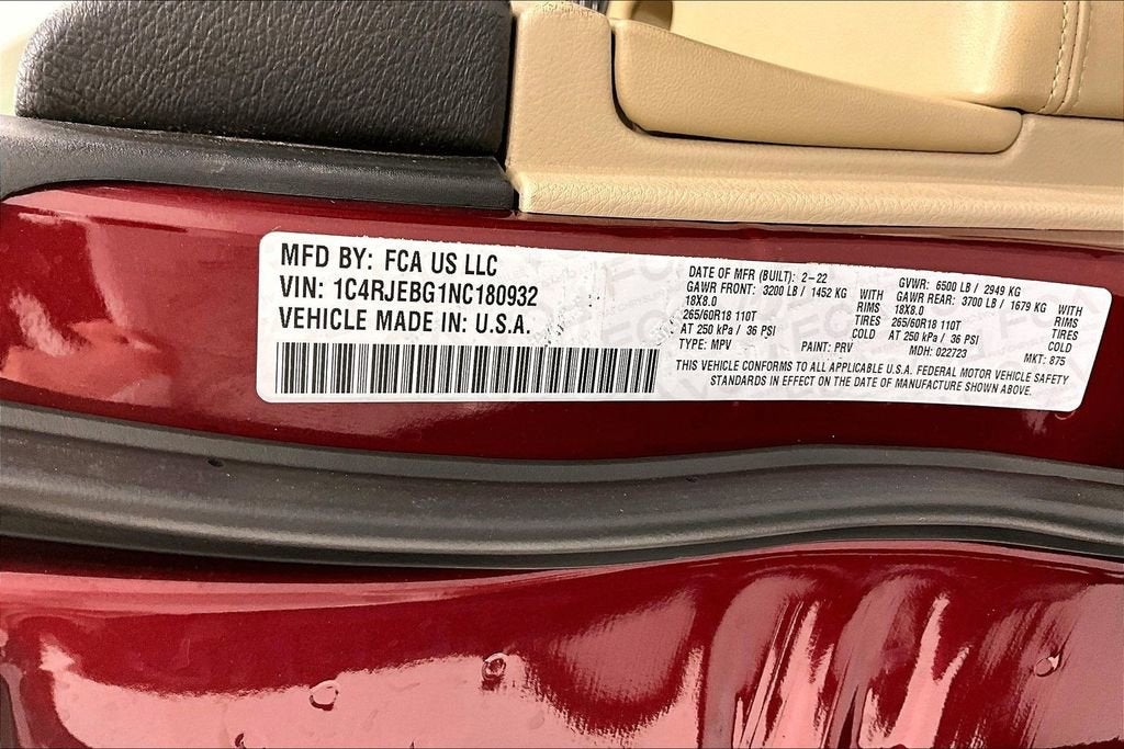 Clean CARFAX. Recent Arrival! 2022 Jeep Grand Cherokee WK Limited 3.6L V6 24V VVT RWD 8-Speed Automatic19/26 City/Highway MPG