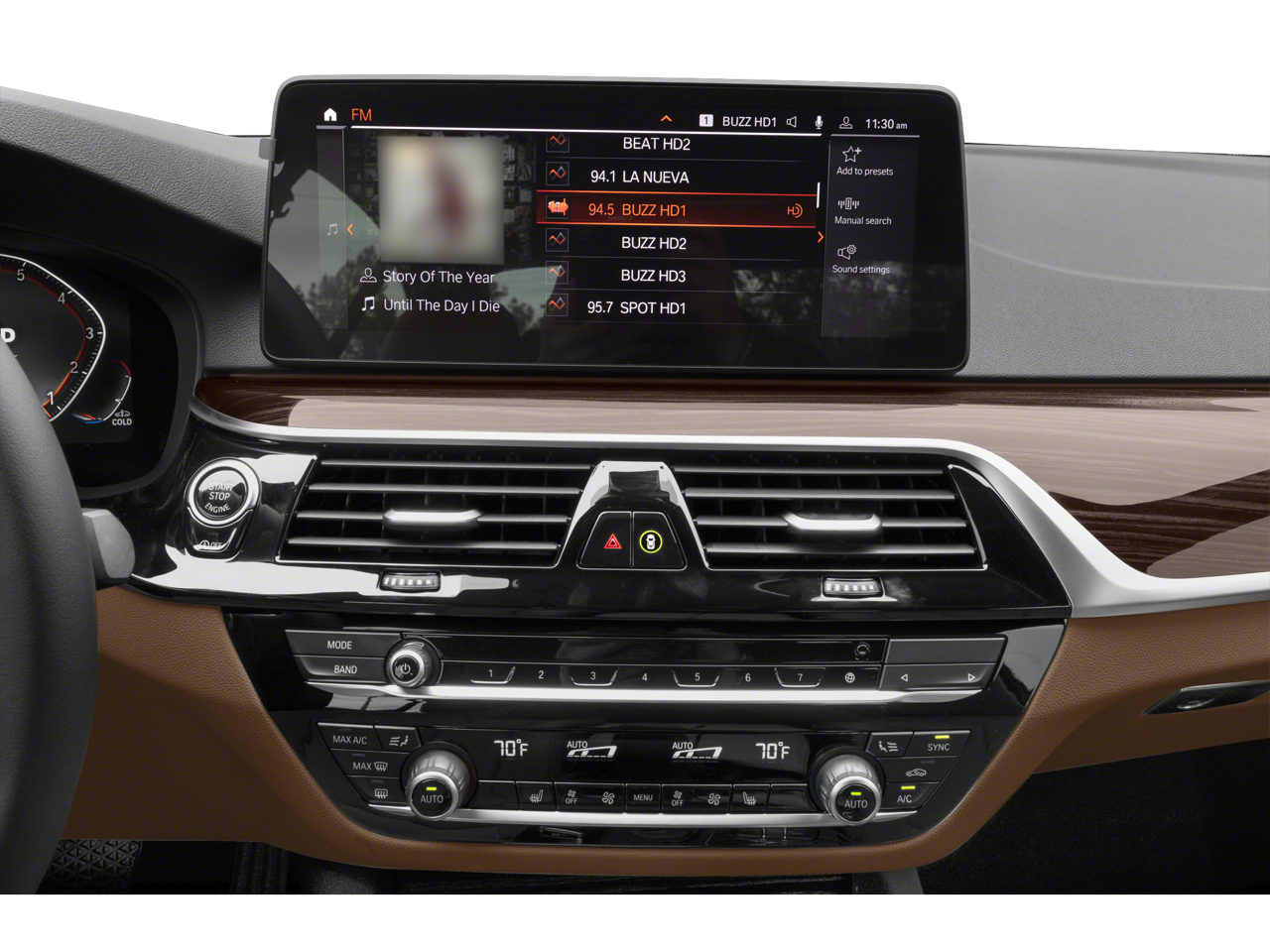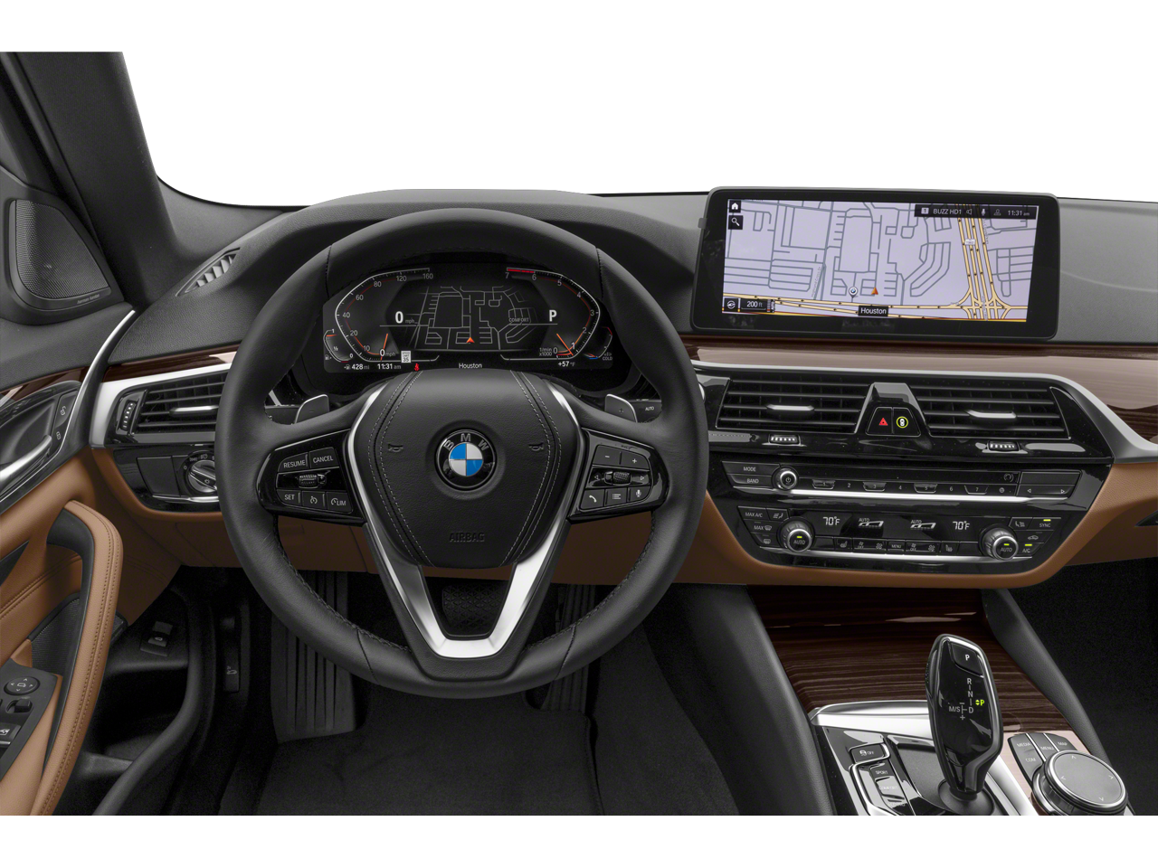 Step inside this 5 Series and you'll be greeted by a wealth of premium amenities, including a stunning harman/kardon Surround Sound System, a Head-Up Display, and heated front seats. The SensaTec dashboard and genuine wood trim elements create a luxurious and refined ambiance, while the Shadowline Exterior Trim and M Sport Package lend an athletic and sporty aesthetic.