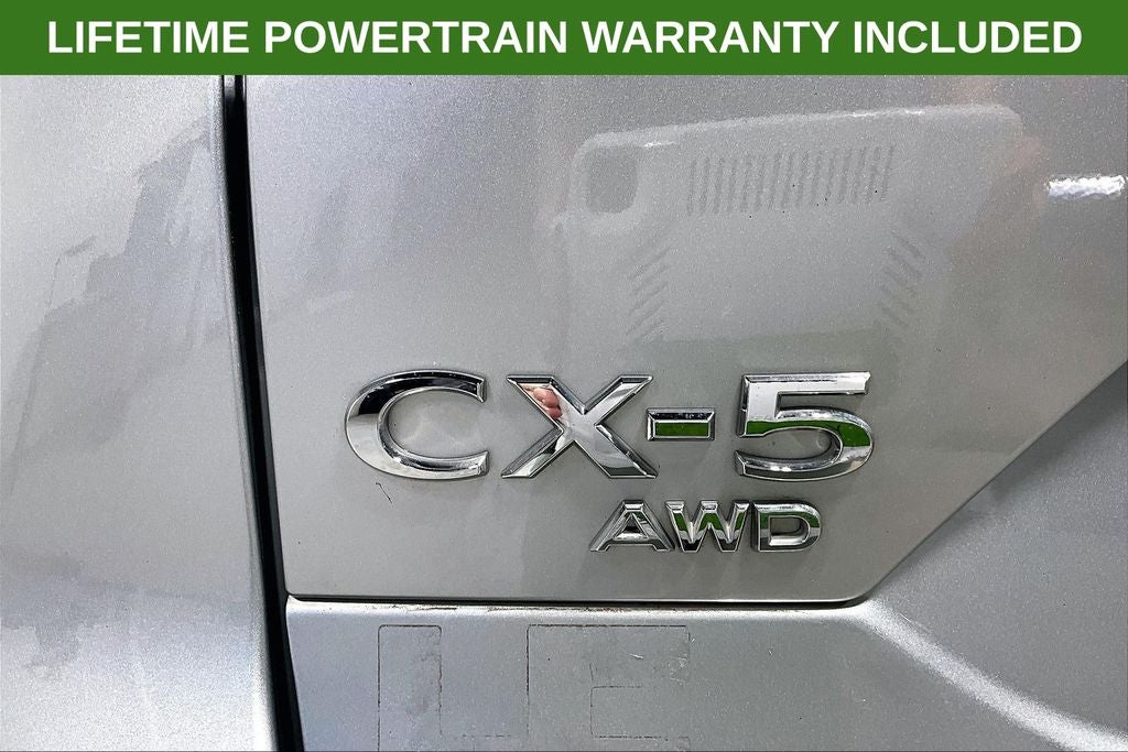 2023 Mazda CX-5 2.5 S Select Package 2.5 S Select Package Sonic Silver Metallic 4D Sport Utility AWD SKYACTIV® 2.5L 4-Cylinder DOHC 16V 6-Speed Automatic 1 Owner, New Feature, Apple CarPlay / Android Auto, Backup camera, Heated seats, Leather seats, CX-5 2.5 S Select Package, 4D Sport Utility, SKYACTIV® 2.5L 4-Cylinder DOHC 16V, 6-Speed Automatic, AWD, Sonic Silver Metallic, Black Artificial Leather, 4-Wheel Disc Brakes, 4.624 Axle Ratio, 6 Speakers, ABS brakes, Air Conditioning, Alloy wheels, AM/FM radio, AppLink/Apple CarPlay and Android Auto, Auto High-beam Headlights, Automatic temperature control, Brake assist, Bumpers: body-color, Delay-off headlights, Driver door bin, Driver vanity mirror, Dual front impact airbags, Dual front side impact airbags, E911 Automatic Emergency Notification, Electronic Stability Control, Emergency communication system: MAZDA CONNECT, Exterior Parking Camera Rear, Four wheel independent suspension, Front anti-roll bar, Front Bucket Seats, Front Center Armrest w/Storage, Front dual zone A/C, Front reading lights, Fully automatic headlights, Heated Front Bucket Seats, Heated front seats, Illuminated entry, Infotainment System Voice Command, Leather Shift Knob, Leatherette Seat Trim, Low tire pressure warning, Multifunction Commander Control, Occupant sensing airbag, Outside temperature display, Overhead airbag, Overhead console, Pandora, Panic alarm, Passenger door bin, Passenger vanity mirror, Power door mirrors, Power driver seat, Power steering, Power windows, Radio Broadcast Data System Program Information, Radio data system, Radio: AM/FM/HD Audio System, Rain sensing wipers, Rear anti-roll bar, Rear Bumper Guard, Rear reading lights, Rear seat center armrest, Rear window defroster, Rear window wiper, Remote keyless entry, SMS Text Msg Audio Delivery & Reply, Speed control, Speed-sensing steering, Split folding rear seat, Spoiler, Steering wheel mounted audio controls, Tachometer, Telescoping steering wheel, Tilt steering wheel, Traction control, Trip computer, Turn signal indicator mirrors, Variably intermittent wipers, Wheel Locks, Wheels: 17 x 7J Aluminum Alloy.