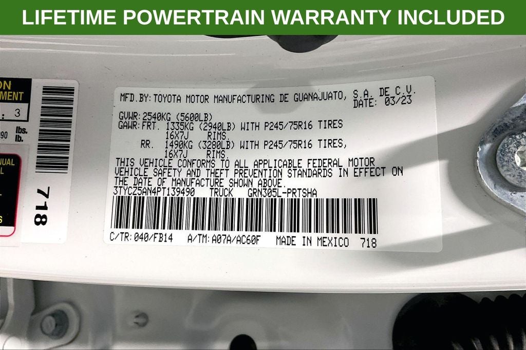 2023 Toyota Tacoma SR V6 SR Ice V6 4D Double Cab 4WD 3.5L V6 PDI DOHC 24V LEV3-ULEV70 278hp 6-Speed Automatic 1 Owner, New Feature, Apple CarPlay / Android Auto, Backup camera, Bluetooth®, Tacoma SR V6, 4D Double Cab, 3.5L V6 PDI DOHC 24V LEV3-ULEV70 278hp, 6-Speed Automatic, 4WD, Ice, Cement Cloth, 16 Styled Steel Wheels, 6 Speakers, ABS brakes, Air Conditioning, AM/FM radio: SiriusXM, Anti-whiplash front head restraints, Apple CarPlay/Android Auto, Auto High-beam Headlights, Automatic temperature control, Axle Ratio: 3.91, Brake assist, Bumpers: body-color, Driver door bin, Dual front impact airbags, Dual front side impact airbags, Electronic Stability Control, Emergency communication system: Safety Connect (1-year trial), Exterior Parking Camera Rear, Fabric Seat Trim, Front anti-roll bar, Front Bucket Seats, Front Center Armrest, Front dual zone A/C, Front reading lights, Front Seats, Front wheel independent suspension, Heated door mirrors, Illuminated entry, Knee airbag, Low tire pressure warning, Occupant sensing airbag, Outside temperature display, Overhead airbag, Overhead console, Passenger door bin, Power door mirrors, Power steering, Power windows, Radio: Audio, Rear step bumper, Speed control, Speed-sensing steering, Split folding rear seat, Steering wheel mounted audio controls, Tachometer, Telescoping steering wheel, Tilt steering wheel, Traction control, Variably intermittent wipers.