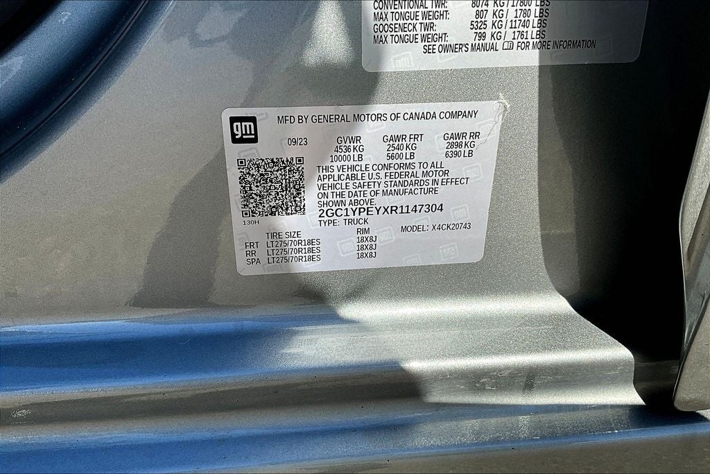 - Tire, spare LT275/70R18 all-terrain, blackwall (Included and only available with (QF6) LT275/70R18E all-terrain, blackwall tires, (QG3) LT275/70R18 mud-terrain, blackwall tire or (QF9) LT275/65R20 all-terrain, blackwall tires with (E63) Durabed, pickup bed. Included when (QFG) LT275/65R20 blackwall off-road tires are ordered without (ZW9) pickup bed delete. Available to order when (ZW9) pickup bed delete and (QF6) LT275/70R18E all-terrain, blackwall tires are ordered.)